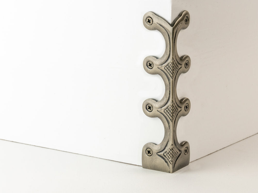 Skiffer corner protectors are beautiful solid brass castings designed to prevent damage to skirting boards and wall corners.